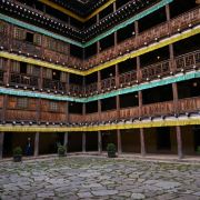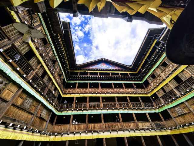 土司官寨,又称土司署或土司官邸,是旧时土司管辖土地行使权利的中心,也是土司权力和地位的象征。卓克基土司官寨文化旅游景区位于卓克基镇西索村,其布局仿汉族四合院结构,上下五层,共有大小房间63间,是一座典型的嘉绒藏族建筑。现主要开放一至四层,一层主要是厨房经幡房和酿酒房等;二层有蜀锦楼,中央红军在官寨内召开会议的场景以及军用沙盘等历史文物及文字档案。三层展示的是土司的卧室餐厅吸烟室会客室等。四层是宗教文化展示厅。
