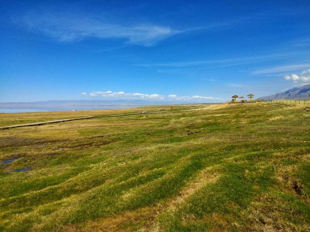 顺着长长的木栈道走进去,里面就是巴里坤湖了。