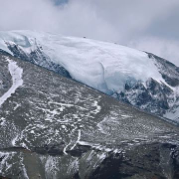 图一,当我们从东嘎冰川下撤返程,我偶然回头,惊讶的发现 我们才下撤的东嘎冰川上空飘着漂亮的云彩 ,至少我第一时间的感觉象极了一条游动的龙~~~,赶紧拍下。