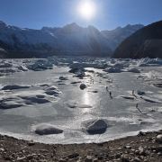 1分 不佳今天,2026.1.17日,到达古冰川景区,体验感超级不好。我买票时,工作人员说安全考虑,不能上冰面不能去最美的冰洞,我们想着如果不安全,不去就罢了,看看其他景观也好。结果,只有一片冰川,站在高点远观一下,关键远观看不出什么美感,感觉就是哪个湖边结了一块冰的感觉。想着再去其他景观看看,可是没有了,就这一处。