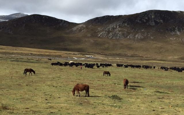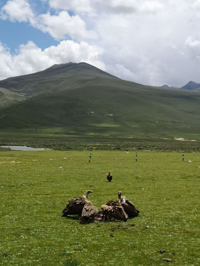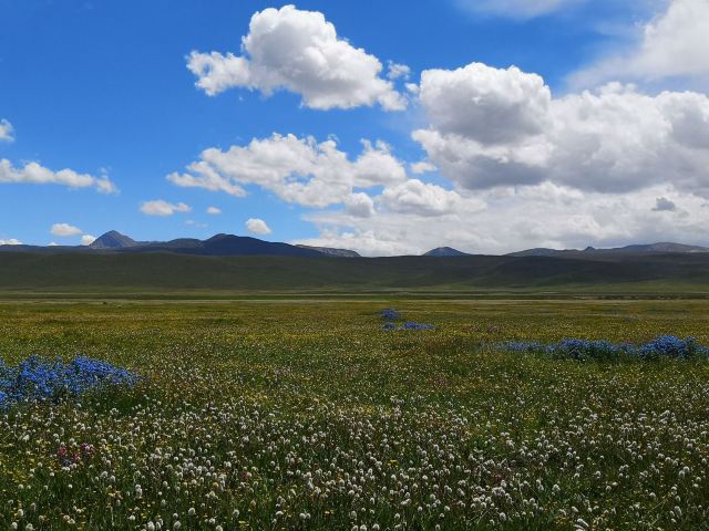 5分 超棒毛垭大草原在四川的甘孜州理塘县县城以西,在群山的环抱之中,毛垭草原荒草萋萋,而不少鸟儿盘旋在高空中,在自由的翱翔,远远的能看到草原深处有座白塔,草原总是给人以辽阔的感受,感觉像大海一样可以让人的心平静、开阔起来,适合静静的待一段时间,去感受这种高楼林立的都市没有的那种空旷和悠闲,蓝天白云,广阔草原,牛羊成群,甚是舒服。