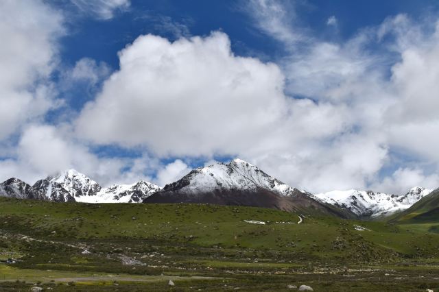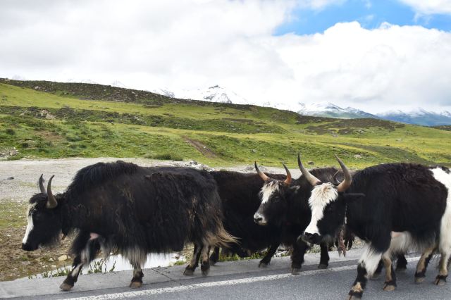 草原公路片圣地!雪山+蓝天白云+牦牛当天然背景板