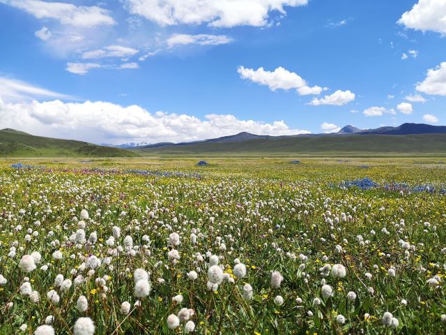 毛垭草原位于世界高城理塘县境内。辽阔的草原一望无边,每年6-9月份,草原上花朵盛开,是非常美丽的时节。2005年中国国家地理评选其为中国美丽的六大草原之一。