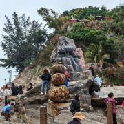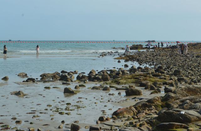 冠头岭海滩的海水十分清澈,既有森林,又有巨大的礁石群,依山傍海,风景如画。