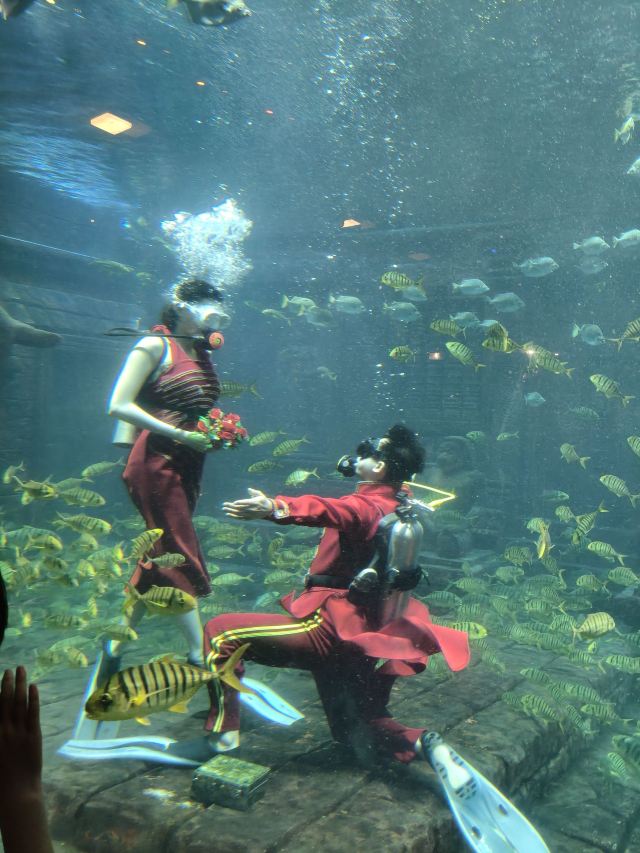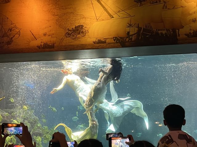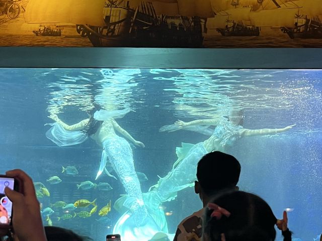 您首先会看到一系列充满海洋文化气息的精品表演节目:水中演绎优美的“人鱼传说”;身着比基尼泳装的美丽潜水小姐与鲨共舞的曼妙奇观;隆重的海底婚礼——延续“泰坦尼克号”中那令人荡气回肠的经典爱情故事;还有海底隧道区内大型海底观赏屏幕中精彩新颖的魔鬼鱼表演、海底失落城震撼的“黄金风暴”表演以及海兽欢乐剧场精彩的四头海狮同台表演,让您叹为观止。漫步百米长的海底隧道,您会发现,有沉没的古埃及神庙、古代海上丝绸之路的沉没古船、二次大战的沉船及飞机、正在熊熊喷发的海底火山,还有来自太平洋和印度洋上千种珍奇鱼类;重达的鲸鱼骨骼和素有美人鱼之称的儒艮标本。