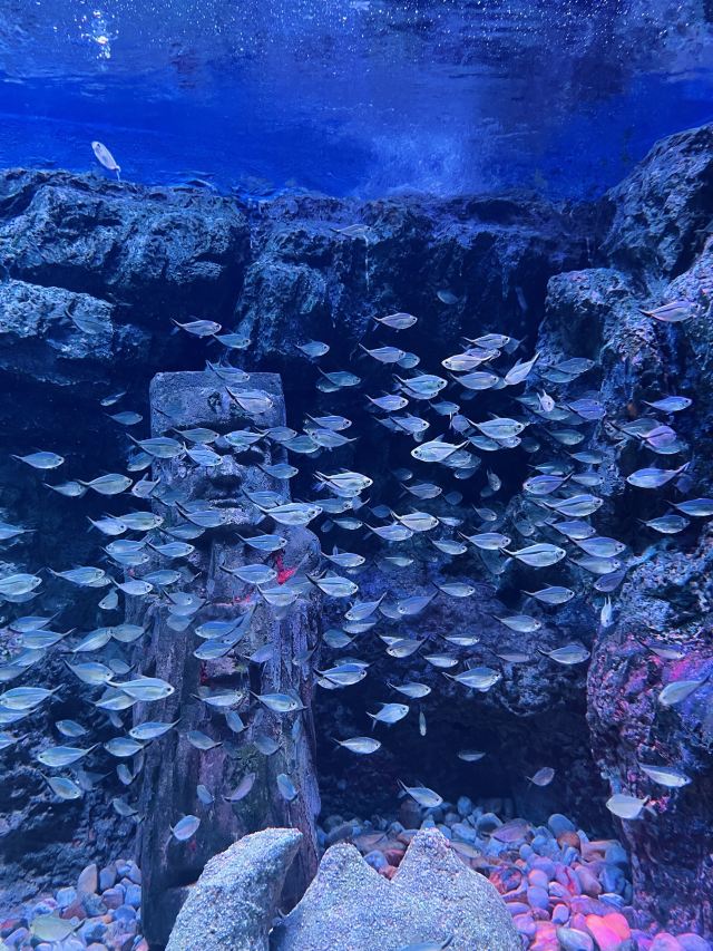 在海底,您还可零距离接触国内大型的魔鬼鱼、可怕的噬人鲨;从渤海千里漂流到北海市面,充满着传奇色彩的海豹“奇奇”;聪明可爱的动物明星南美海狮;漂洋过海,万里迢迢而来的超萌极地企鹅;身临其境体验五光十色、神奇梦幻的水母世界,感受千姿百态、绚丽多彩的海底花园……总之,这里的每一个角落都隐藏着一个神秘美丽的梦,向您诉说着一个个动人的海洋故事。