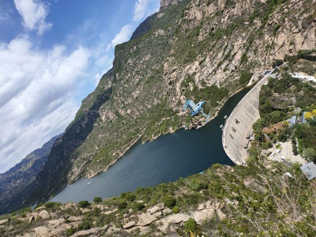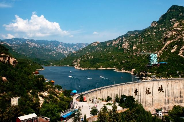 青龙峡风景区内建有水库大坝,将整个景区分为两个部分:南部的高峡平湖区和东岸的极限运动场所。