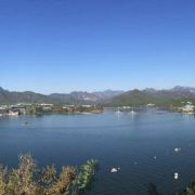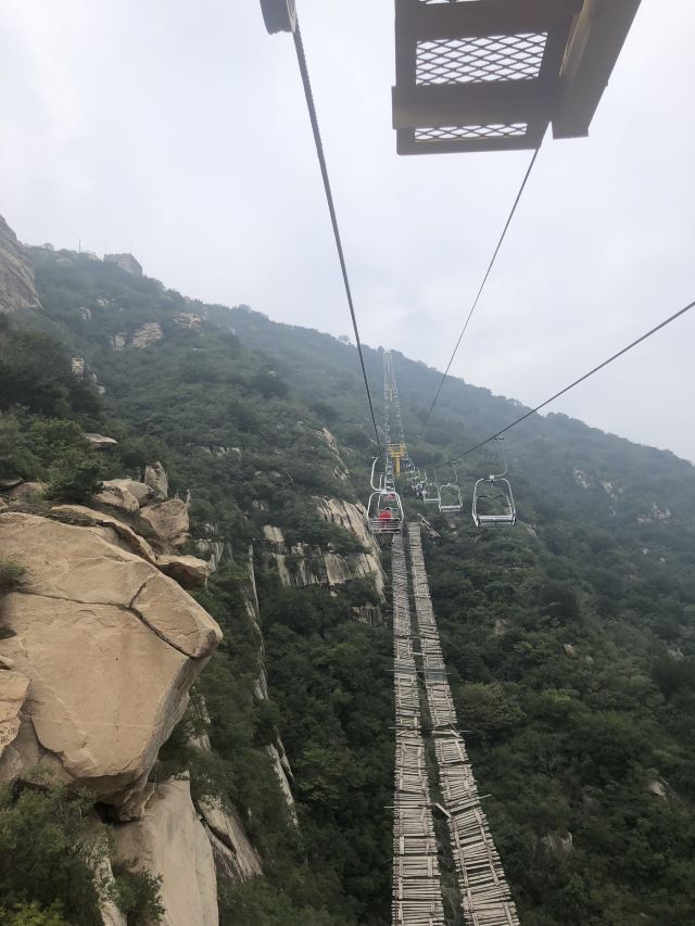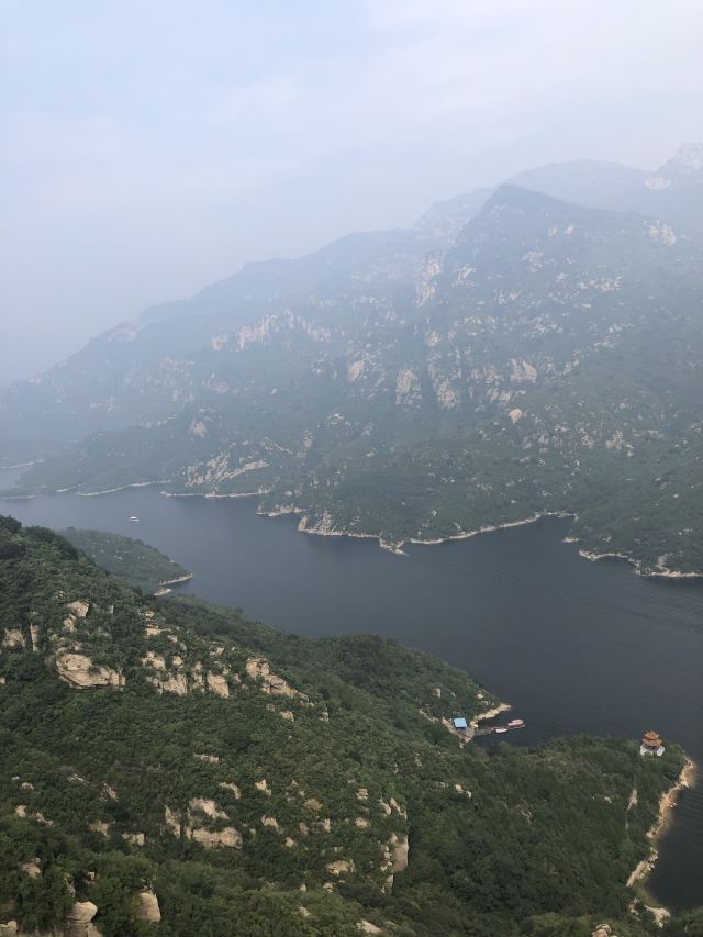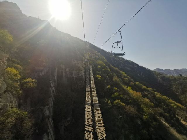 2.缆车:大家都推荐的,除了露天的 陡峭的地方 山风大 有一丝丝害怕😨 好长呀 总也走不完的感觉,山顶 高倍摄像机🎥拍照 20元一张 值得收藏!毕竟高空拿出手机有风险(可以考虑带个有挂绳的手机 一定牢牢的 和身体连接在一起!!)到达山顶后 可以看到雁栖湖 中央电视塔的“裤衩楼” 群 下山路上能看见——大美密云水库