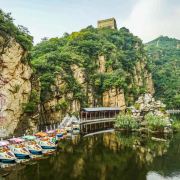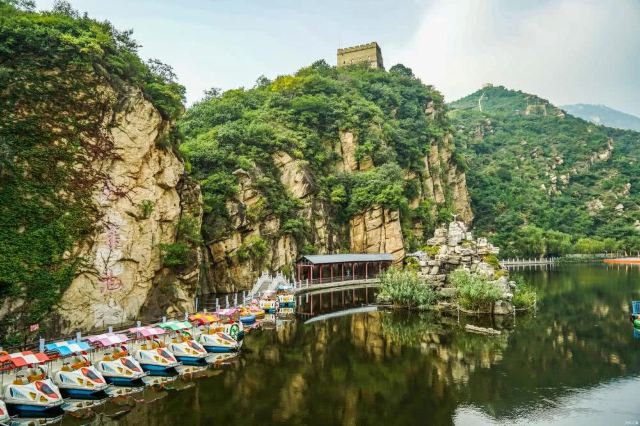 青龙峡风景区四周青山环抱绿水,空气清新,踏青游山时,沿途还能看到明代古长城,是北京市民休闲度假的好去处。除了自然风光,你也可以参加游船、碰碰船、快艇等水上游戏,图刺激的还能试试蹦极和攀岩。