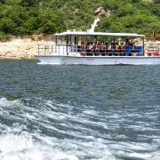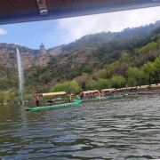 壮观有气势,上游湖水清澈湛蓝,水深40至50米,可以乘坐快艇、画舫、游船。下面是浅水区,水深1米左右,可划竹排,手划船等等。