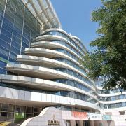 - 造型独特:建筑外观呈多弧度的流线型,顶部的波浪曲线型轮廓象征着妇女的柔媚多姿,整体以白色金属板为基调,配以浅灰色玻璃,显得高雅、纯洁。