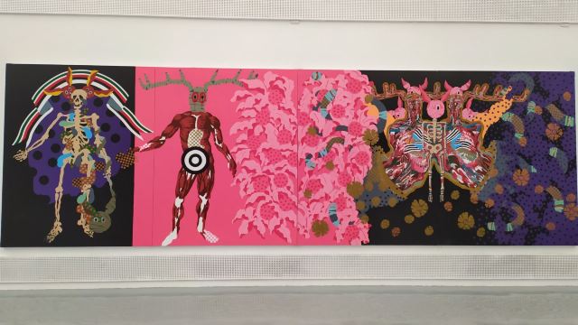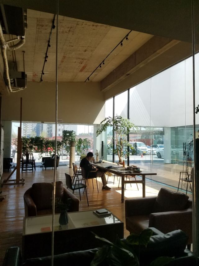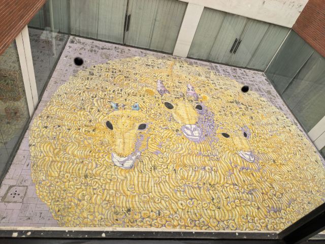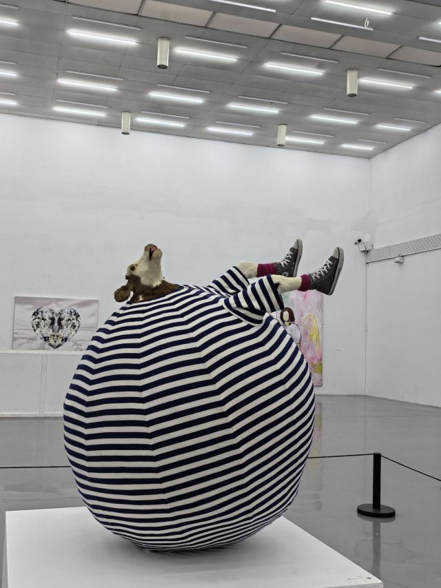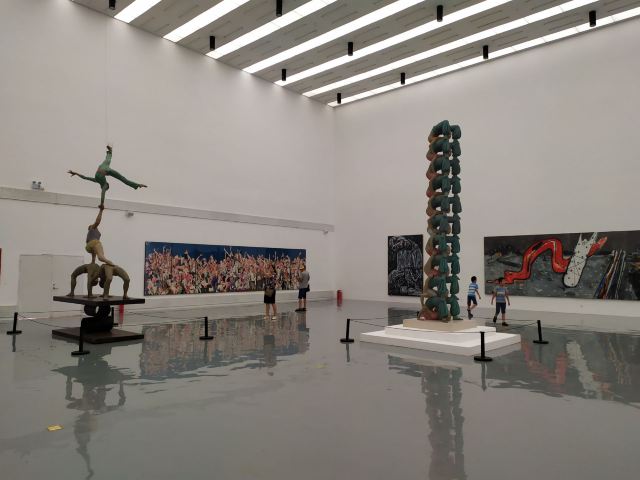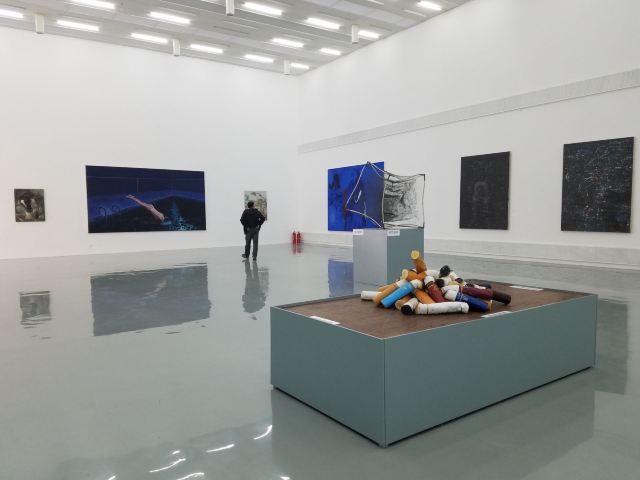 宋庄美术馆免费,不要证件,可直接进入参观,周一闭馆,5~9月10~20点、10~4月10~18点参观。美术馆有两层展厅,1个小型图书馆,1个售卖作品、图书、纪念品的商店,1个水吧,小朋友可以在水吧学习、创作。展厅内有直梯上到二楼,但里面的灯坏了,关门后伸手不见五指,着实吓了一跳。一层展厅有卫生间,不大,女厕一蹲一座,有洗手液、擦手纸。整体做到无障碍。