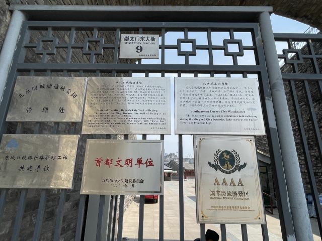 在东侧的城墙上,可以看到旗杆石、古火炮等明代古迹,还有八国联军侵占北京时在城墙上的刻字等,都很有历史价值,可以看看。东南角楼内,有一些古迹展览,其中有老火炮、城楼照片等,还有一些关于现代北京的摄影绘画等艺术展,都可以一一参观,了解北京城的历史与今天。