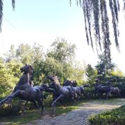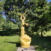 5分 超棒北京国际雕塑公园有三件韩美林的雕塑作品,分别是《母子情深》、《人生美好》和《在阳光下》,都是铸铜制成,而且女子都是臀部丰满、大腿健硕,手臂纤细修长,脑袋很小、脸型是瓜子脸、前两幅作品中的儿童呈现出胖乎乎的娇憨状。第一件作品《母子情深》中母亲把孩子高高举过头顶,我理解的是母亲再苦再难都要让孩子过上出人头地的生活。第二件作品《美好人生》,母亲手捧苹果,胳膊上站着吉祥鸟,孩子张着双臂奔向母亲,我理解的是平安吉祥就象征着美好生活。第三件作品《在阳光下》,有三个青春少女在阳光下奔跑,前两个少女扎着马尾辫,就像飞扬的马鞭。第三个少女披散着长发,形似泼洒的墨汁写成的重重的一撇。动感刻画的栩栩如生。什么是人生的真谛?健康和爱就是人生的真谛。