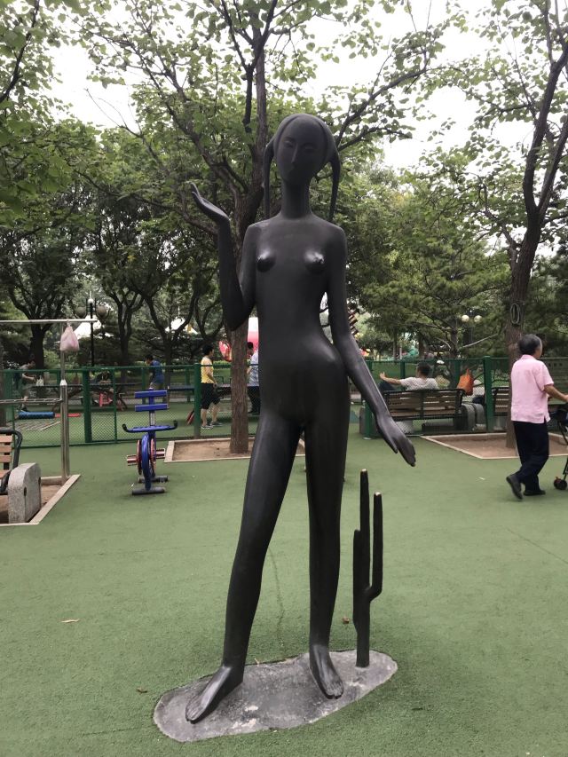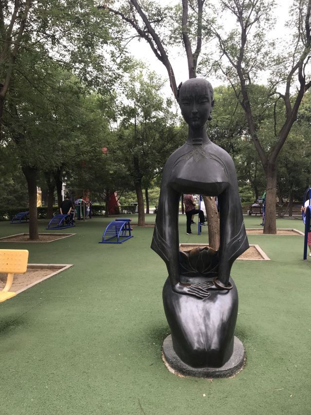 在健身器旁有三座女性雕塑,非常有韵味。分别是东方韵、优雅女子、初潮,把女性的曲线、柔美展现的淋漓尽致。在提倡女性独立的今天, 女人仿佛活成了战士,其实女性的温柔如水才是女人最大的魅力,愿每个女子出嫁前能享受父母的疼爱,成家后能得到丈夫的宠爱,年老后能得到儿女的敬爱,在爱的滋养中生活的女人,才会展现出温柔之美。