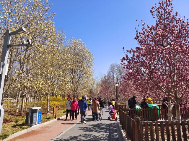 第二,园子里绿化覆盖程度非常高,植物种类很多,迎春花、玉兰花、海棠花都形成了一定规模,尤其是玉兰花,各个品种的玉兰花有5000余株,是现今北京规模最大的专类玉兰观赏园。另外现在秋天已至,植物的颜色纷纷开始发生变化,有些树木的顶部已变成黄色,有些叶片正在慢慢发红,深秋的绚丽景象为时不晚了。