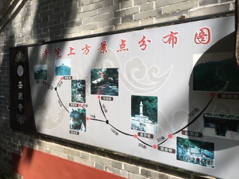 圣泉山没有五岳之名,却有五岳之势。放眼四周,高岭百转,群峰林立,峰岭之间沟谷棋布,远离尘世喧嚣、享天然之气。景区山麓至“禅林春晓”段,海拔落差288米,上山步道坡度平均25度,适宜登山健身;“禅林春晓”至观音寺段,松柏葱翠,林荫夹道,山鸟啼鸣,空气清新,适宜漫步观景。