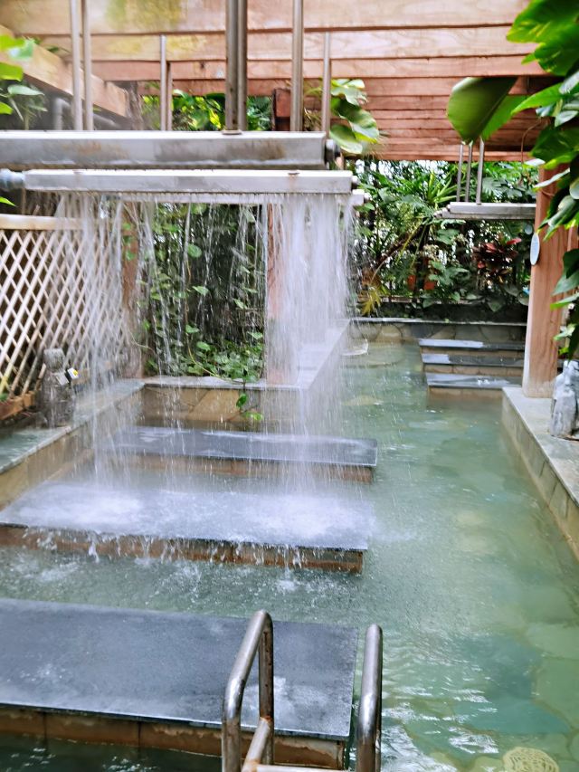 5分 超棒有适合老人的温泉药浴,适合年轻人的美容花瓣浴,还有适合小孩的大面积温泉,免费的零食水果,提供自助餐(需购买)种类较多,还有休息区人多时要提早入场,天气暖和室外温泉景色也不错。随时有服务员提供服务。有一点瑕疵就是不知是不是温控器的问题,同样41度的汤,体感差好几度,水温太高容易晕,提醒老年人注意。总体很好。有机会还来光顾。