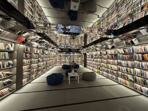 第七书吧区-挨着电竞区有点怪怪的,别的区域八光线又不太足,挨着玩游戏吧,又有点吵。这是让不让看书呢。