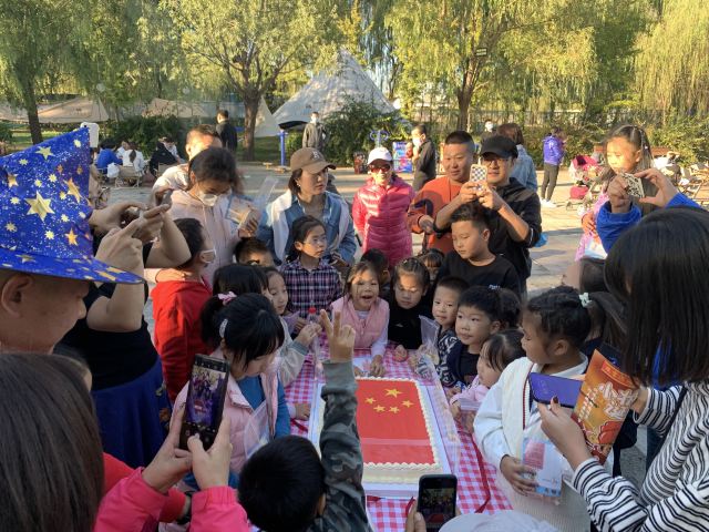 5分 超棒赶上国庆节,还挺热闹的。孩子和冰墩墩合影、投壶还有别的活动。为祖国庆生吃了蛋糕。还有文创冰棍。晚上还有歌手演出