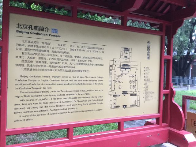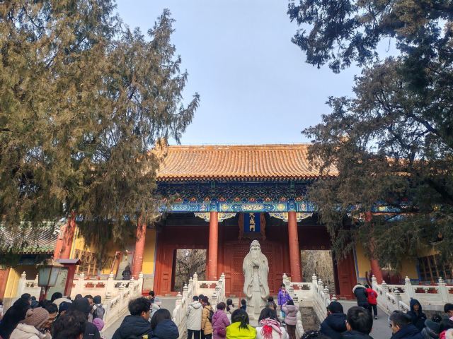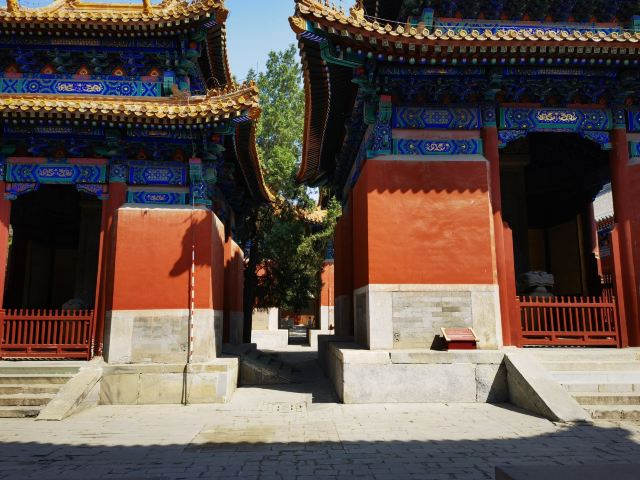 北京孔庙位于的国子监街上,与国子监紧邻,始建于元朝,是元、明、清三朝祭祀孔子的地方。北京孔庙经过历代皇家帝王的尊崇,地位极高,又经多次修缮,从规格和地位上讲是仅次于曲阜孔庙的全国第二大孔庙。目前孔庙和旁边的国子监一起作为孔庙和国子监博物馆开放参观,统一售票。售票处在孔庙大门边,购票后先进入孔庙游览,游览后可以在孔庙碑亭旁的“持敬门”进入国子监游玩。两处一共游玩时间约3-4小时左右,其中孔庙部分约2小时。参观众多元代建筑游玩孔庙,首先要注意的一点便是院内的建筑。孔庙内的部分建筑经历代修缮,却依然保持着元代风格。比如大门处的先师门是大斗拱式的歇山屋顶,这种建筑在整个北京都比较少见,都可以好好参观一下。整个院内古色古香,还有很多知名的古树,环境古朴优雅,可以在这里拍照摄影。随处可见的石碑和碑亭众多的石碑是孔庙的另一个亮点,在孔庙的各个院落内都有众多的石碑和碑亭。这里有袁崇焕、林则徐、李鸿章等知名进士的题字碑,有元朝到清末的五万多名进士的名册碑,还有篆刻着全部儒家十三经的碑林等。这些众多的古碑十分珍贵,其上的内容也非常值得参观。观看传统礼乐表演游玩孔庙的另一个知名活动是观看传统礼乐的表演。在孔庙深处的崇圣祠院内,每天会进行几次传统礼乐舞蹈《大成礼乐》的表演,表演时间分别为10:00、11:00、14:00、15:00、16:00(根据季节和游客人数,表演次数有时可能会减少),每次表演半个小时。有《学而》、《福兮》、《关雎》、《大同》等章节,国学氛围浓厚,十分精彩,可以留意时间前来参观。除此之外,庙内还有祭拜孔子的庙堂大成殿、祭奠众多先贤及其祖上的崇圣祠、孔庙历史沿革展览馆和国学馆等。在这里可以看到祭奠孔子的礼器、牌位和孔庙的历史沿革等,可以一一了解参观。