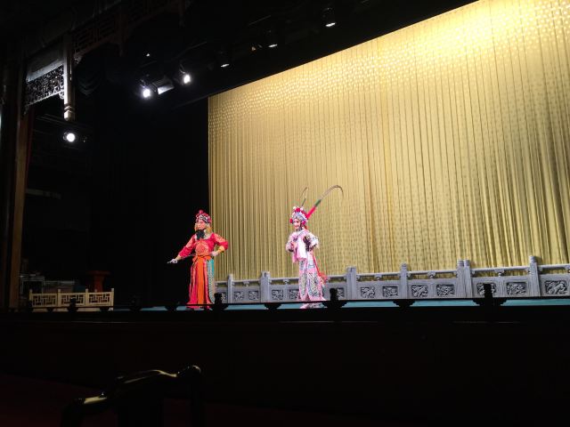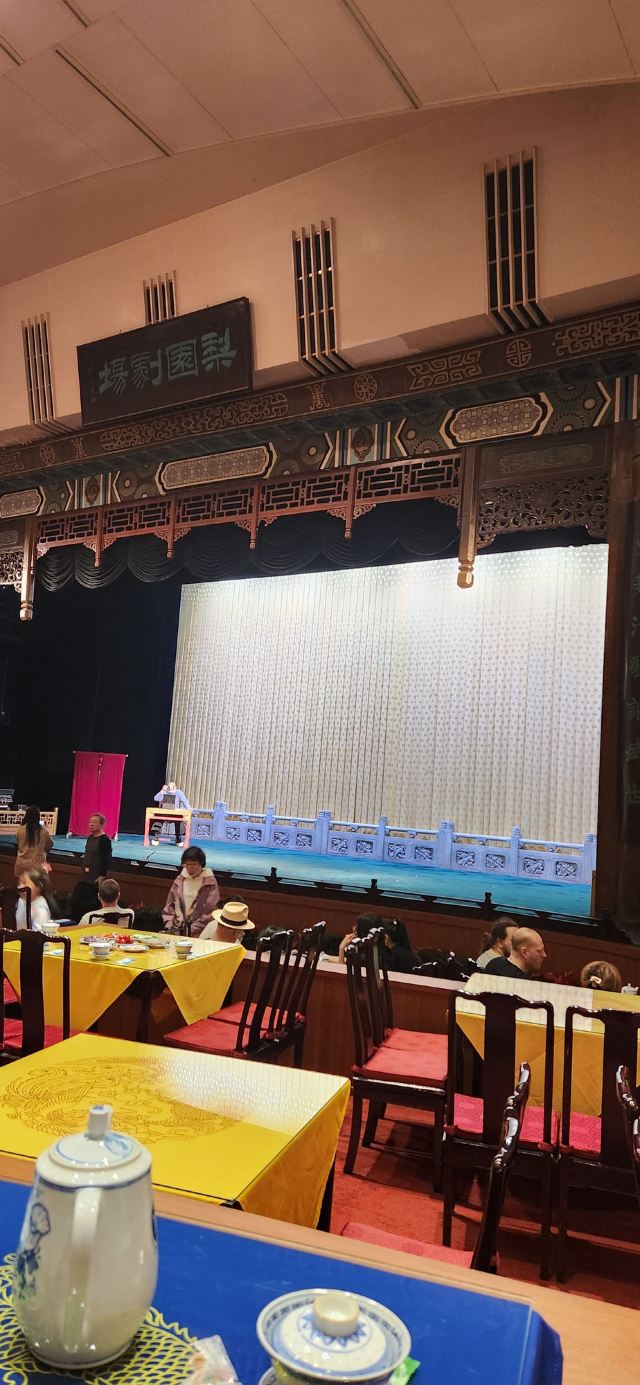 5分 超棒梨园剧场看来是专为想体验京剧文化的旅客而设,因此表演只是一个多小时,不会太占用旅客的宝贵时间,却已足够令我们对京剧印象难忘。经过酒店大门的回转门后就已看到剧场的两个大门,但必须先到左手边一个小房间里领取实体票再进剧场。剧场是提早至少30分钟开门的,因此想要争取有利位置的客人宜及早到埗。进场后,服务员会带领座位,前区一般是6位一桌的,有小吃和茗茶提供。在此必须郑重答谢 trip.com 的客服,因为我曾担心自己无法跟场馆联系以预留座位,最后客服替我联系和预留了,令我放下心头大石,而且最后也能愉快地完成活动。