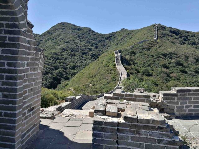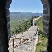 5分 超棒坐919路车在八达岭古长城站下车,转身就能看到巨大的古长城广告牌,按照指示走几百米上一个平台,然后再按照指示牌走800到1000米就可以到古长城景区大门,在售票处凭二维码换票,不过不是印刷的门票,而是手写一张收据,进大门就给工作人员收走了,所以想留门票作纪念的,没有。进了大门,还要走800到1000米才能到登长城的步道口,走上步道,左右都有路,走右边的,最多10分钟就到长城上了。这个古长城的特点之一是游客极少,因为附近有八达岭长城,居庸关长城,水关长城,古长城是最不知名的,也交通不便,也没有观光车和缆车,所以没有任何团队,游客以老外为主,有少量国人自由行游客,越往上走,游客越是稀少,非常安静,适合拍照,不用担心人肉背景,想咋拍就咋拍。特点二是古长城虽然经过修补,还是比较残破的,看敌楼就知道了,都不完整,最前面一段两边安装了铁扶手,个别路段还有木楼梯,有些路段还是比较陡峭的。特点三是走到某个敌楼,有块木牌子,写着前面是未开发段,请勿入内,但并没有封闭,想不想往前走看自己,我没有原路返回,走完了整段长城,一直走到长城延伸到山脚下,然后长城就断了。下山就是公路,走一段可以路上拦当地人的车,付点钱送到880车站,坐到底就是地铁站。我走过八达岭长城,居庸关长城还有慕田峪长城,古长城的游客最少,最清净,保持了原始风貌,我个人还是蛮喜欢的,与其在八达岭人挤人看人头照片都是人肉背景,还不如来旁边的八达岭古长城,一不小心可能就承包了这段长城。