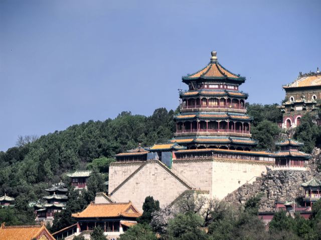 从山脚的“云辉玉宇牌楼”牌楼,经排云门,佛香阁-二宫门,排云殿,德辉殿,佛香阁,直至山顶的智慧海,形成一条层层上升的中轴线,是游人们必经之处。
