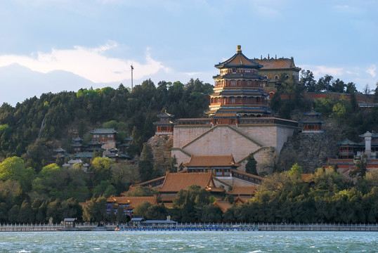 还使得通透开阔的昆明湖与厚重雄伟的万寿山山体相得益彰……