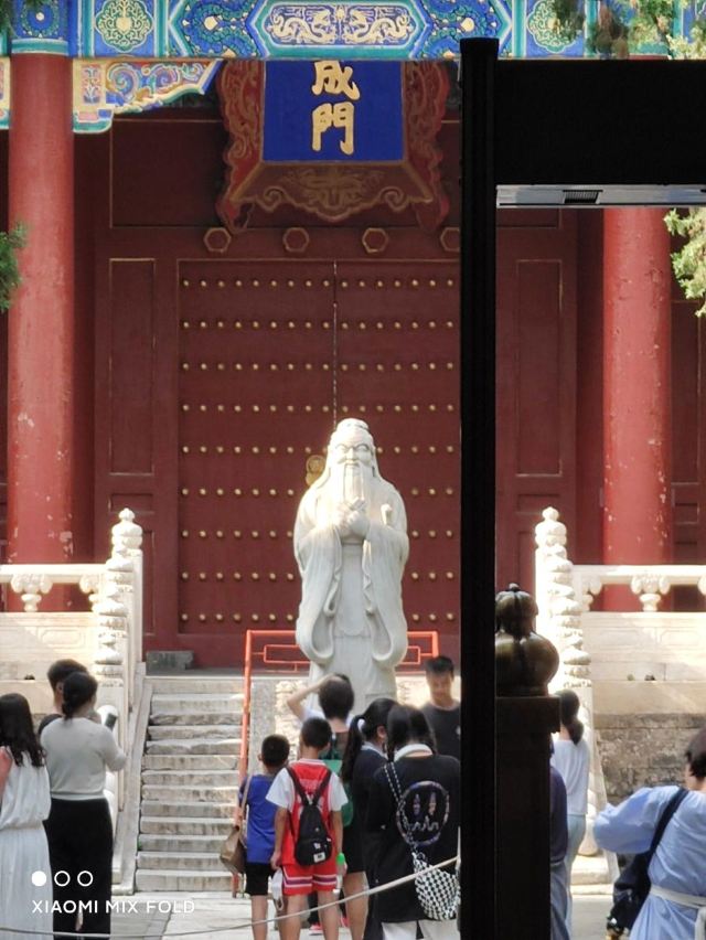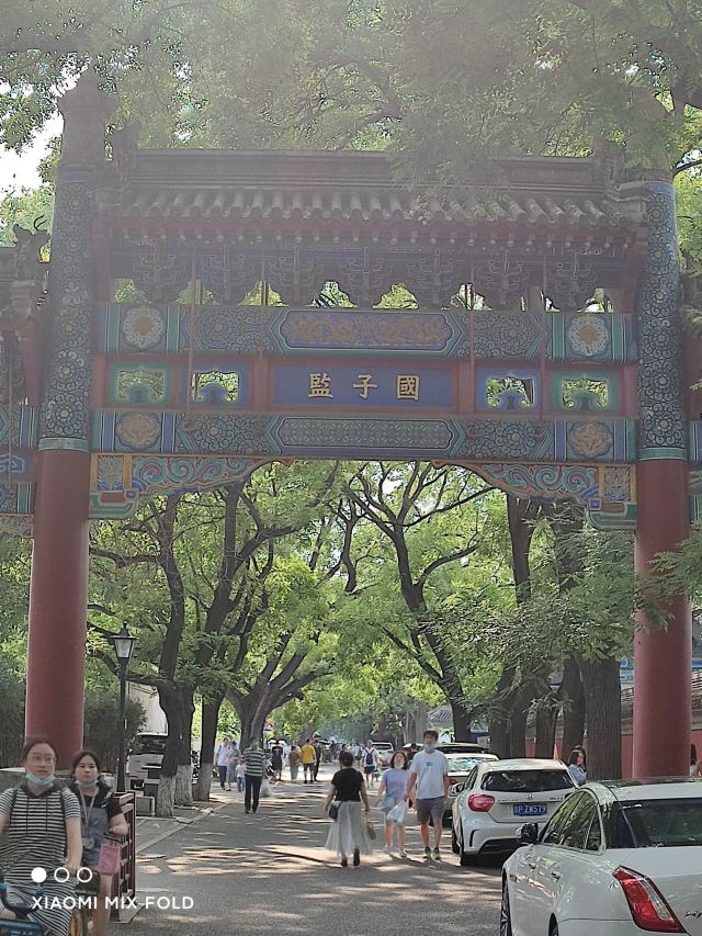 5分 超棒周末,去国子监北面(老北京俗称后身)的韩文公祠参加活动,时间还早,不由得先到国子监街上走走。几十年前,首都图书馆曾设在国子监内。上中学时,常来国子监借书还书读书。元大德十年(1306年),北京国子监始建,初称为北平郡学,截止2017年已有711年的历史,是元、明、清三代的国家最高学府及教育行政管理机构。现在国子监成了成为旅游胜地,每年高考前,有不少学生来国子监和孔庙拜谒。进入国子监街,迎面一座牌楼,上书“成贤街”,再往里走,在国子监大门两侧几十米开外各有一座上书“国子监”牌坊。街里人头攒动,大多是带着孩子游览参观的游客。街边买东西的也不少,尤其是卖莲花和莲蓬的,甚是吸引人。来到这条街上,深深的感受到中华文化的深远传承和博大精深。
