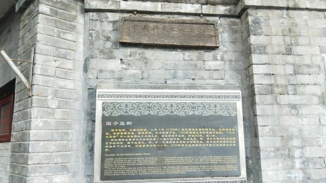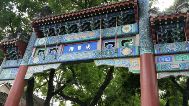 国子监街位于北京市东城区,东起雍和宫大街,西至安定门内大街,是北京知名的牌楼街,也称“成贤街”。国子监街为元朝大都旧街,当时太学设在此处,明清时期为孔庙(13号 )和国子监(15号),已有700多年历史。