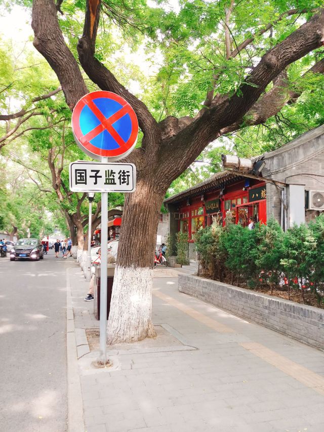 古街两边多为低矮整洁灰墙灰瓦的四合院民居,保存着老北京街巷的风貌。两旁槐树成行,绿冠浓荫与4座彩绘牌楼、大小宅院、庙宇相映成趣,清幽恬静,使得整条国子监街充满了古色古香的味道。