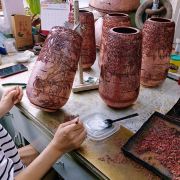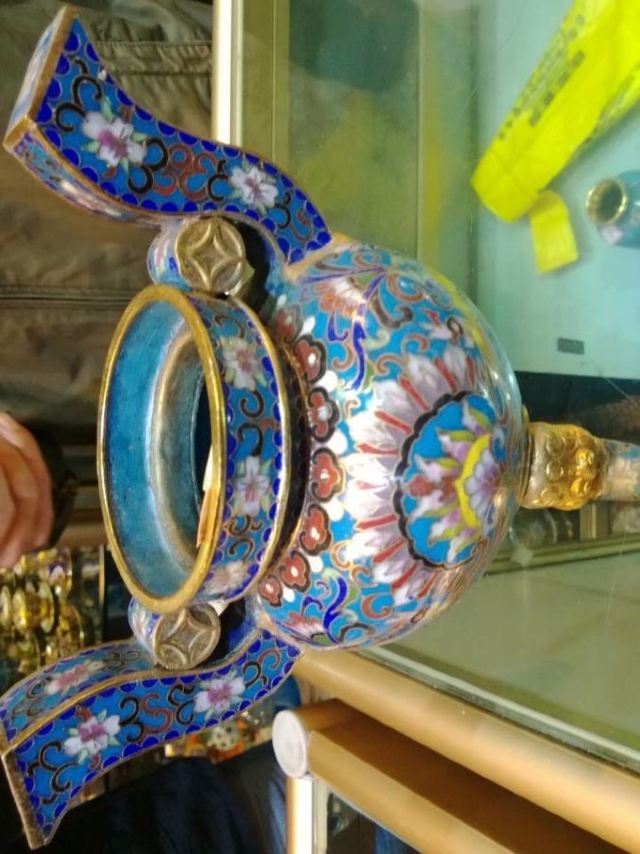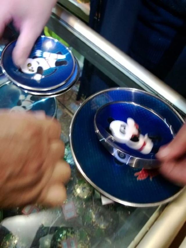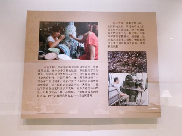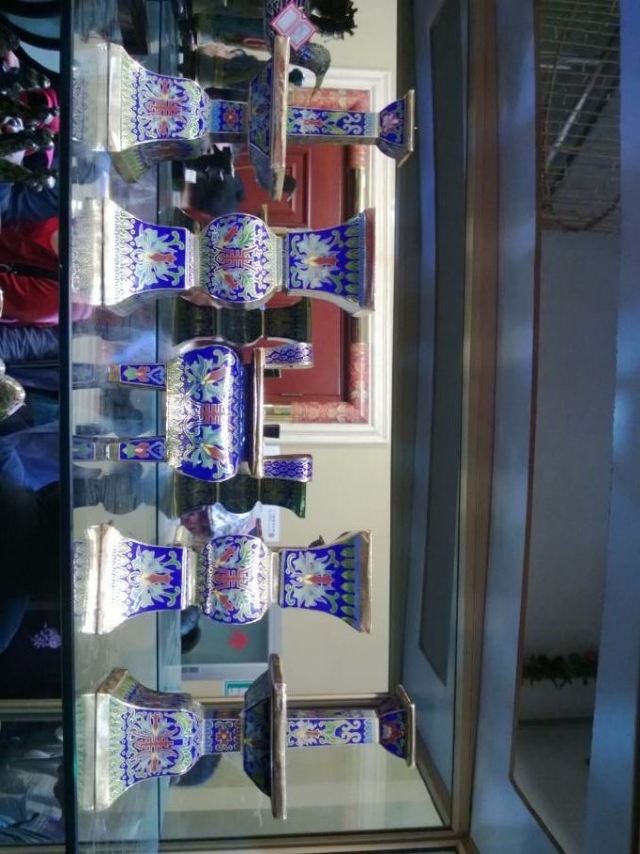 经珐琅厂工作人员介绍又饶有兴趣的参观了位于北京珐琅厂二楼的制作工艺车间,这里可以身临其境亲眼看看一件精美绝伦的艺术品每一道的制作工艺。今天是周末,虽然工人师傅不多,但也看到了掐丝,粘丝,靛蓝等工艺的现场演示。非常有意思!