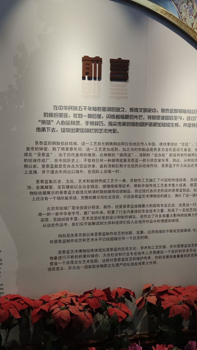 5分 超棒中国景泰蓝博物馆位于北京市东城区安乐林路10号北京珐琅厂厂区内。博物馆位于办公楼三层,分左右两个展厅。左展厅讲述了中国珐琅彩工艺的历史,参观实物展览前建议先观看LED大屏的中国掐丝珐琅彩工艺的纪录片,片中详细讲述了一件景泰蓝艺术品如何从设计,制作铜胎,掐丝,靛蓝,抛光等多道复杂工序才能形成一件精美绝伦的艺术珍品。馆中大量的实物展品,是北京珐琅厂从建厂到现在的艺术珍品展示和珐琅彩艺术大师的生平介绍;右侧展厅是北京珐琅厂复刻的故宫清廷的收藏品和贵厂艺术大师的亲自设计制作的宝贝,重点建议参观一下镇厂之宝——《秦陵铜马车》。珐琅厂的工作人员服务热情,讲解专业,非常感谢!。