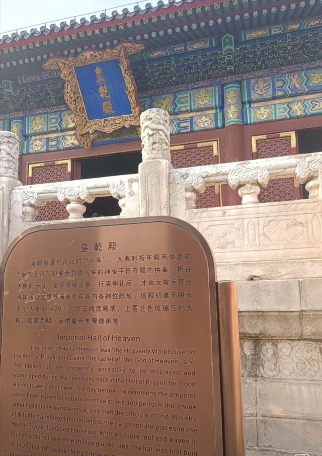 5分 超棒皇乾殿位于天坛祈年殿的后面,是一座和祈年殿形状不同的正常宫殿,内部的布置非常精致,可惜疫情期间不让内观,有点遗憾,不过在门外也能拍到不错的景致。