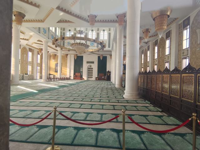 5分 超棒窦店清真寺占地14958平方米,建筑面积12142平方米,能同时容纳1500人礼拜。清真寺呈回字形布局,设有大殿、副殿、讲堂、办公室、接待室、会议室、展室、埋体房、洗浴室、餐厅等,大殿位于正中央,形成“众星捧月”的建筑风格,是华北地区最大的清真寺。在北京市西南部房山区的窦店镇窦店村,一座新近修建完成的清真寺格外引人注目。步入清真寺内,高耸的邦克楼,浑圆的穹顶,伊斯兰式的雕刻图纹令人仿佛瞬间穿越到了一个阿拉伯国度。
