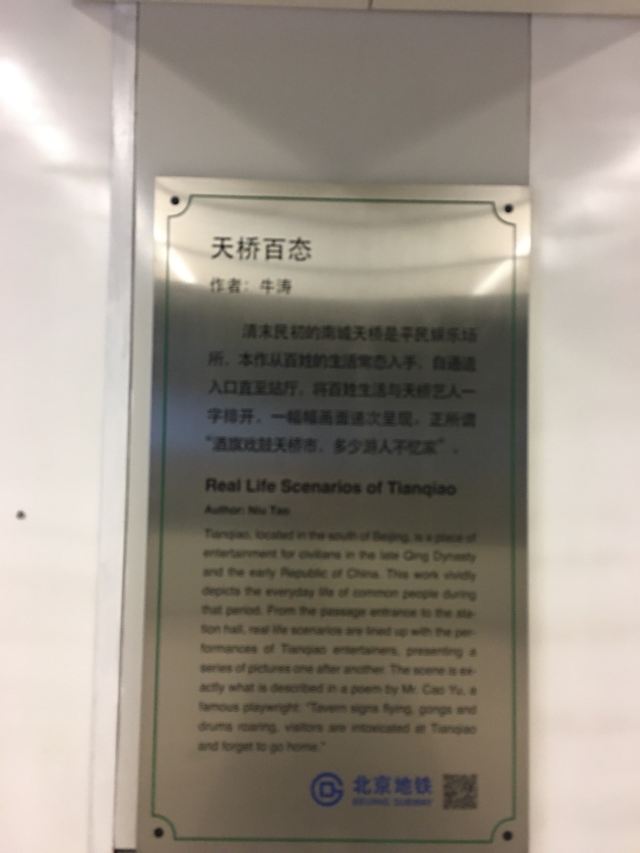 天桥位于北京市城区南侧,紧邻天坛西侧,本是指元代时修建的一座高桥,后来高桥拆除,天桥的地名却保留了下来,现在泛指天坛西侧的一片范围。这里在明清时期曾是北京街头艺术的中心,很多艺人在这里“撂地”表演,非常热闹。如今也有天桥剧场、德云社等众多的艺术场所,很有特色。