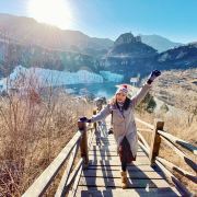 冬日暖阳清晨,登高爬山望远,看着山有点高,但难度系数并不大,和A妈一起边走边拍,很快(约半个多小时)就能到达观景台,金色的晨光暖心,俯瞰壮观的冰面金水湖,看荡桥上的人来人往,整个霞云岭的风景尽收眼底,心旷神怡。很多朋友都关心冷不冷,其实爬山因为全身都运动了,真心不冷,但戴好帽子、围巾手套是很有必要的。