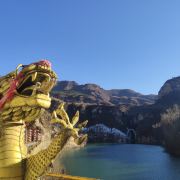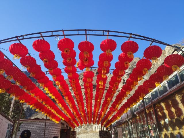 5分 超棒门头挂上了红红的灯笼,一片新气象。今天天气很好,蓝蓝的天空很出片。金色的龙在阳光的映射下闪闪发光。很期待湖面结冰的景色,希望冬天快点冷一些吧!在这么宽阔的湖面滑冰,露营一定很酷。坐等冬季冰雪节尽快开幕哦。