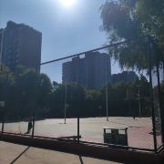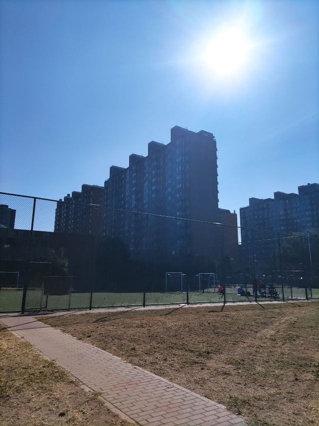 公园里作为突出的就是运动元素,除了林间步道适合跑步、健走以外,公园里还有很多各类场地,足球场、篮球场各有几块,且较为专业,都是铁丝网分割开的,地面的划线也较为完整以及标准,有两块足球场是俱乐部教练在带队训练,也有自己分队踢着玩的,篮球场也是一样,基本上每块场地都没闲着。另外还有适合老年人运动的空竹练习场和门球场,也有老人在进行门球比赛,看起来一板一眼的,很正式。这些场地也不知道收不收费,反正是没看见有工作人员值守,而且有些球场好像还是在铁丝网上掏洞进去的,貌似也没人管。运动场旁边还有一大片健身器材区域,还有不少儿童游乐设施,老人小孩儿都满场了,气氛十分热烈。