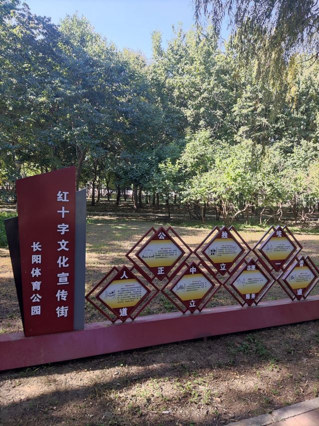 长阳体育公园空气清新,景色宜人,园内有雕刻石和唐朝石碾,历史文化气息浓郁。还有人工湖、羽毛球、门球等设施,是人们休闲运动的好去处。
