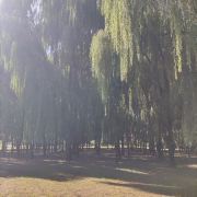 开车过来很方便,附近道路都很畅通,车也不多,而且公园对面就是个超大的停车场,今天在十一假期里,停车场空着大部分,感觉这么大的停车场很难停满吧!进南门,先是一个小广场,广场上的空间足以放风筝,广场北边是一排长廊,很多老人坐在廊下休息、晒太阳。过长廊就是林荫路,道路之间是花坛、树林、草坪,路旁立着不少展板,内容包括自然科普、精神文明建设等方面,另有一些“应急篷宿区”、“应急饮水区”、“应急医疗区”、“应急指挥”等字样的标牌,因为这里还是应急避险区域,所以建设了相关的设施,长阳镇应急避难中心就在公园西北角。公园中心区域是一片不大的湖面,目前湖里水位不深,而且湖底长满了水草,看来需要进行清淤了,不过这片水面还是给公园增添了更为丰富的景致。