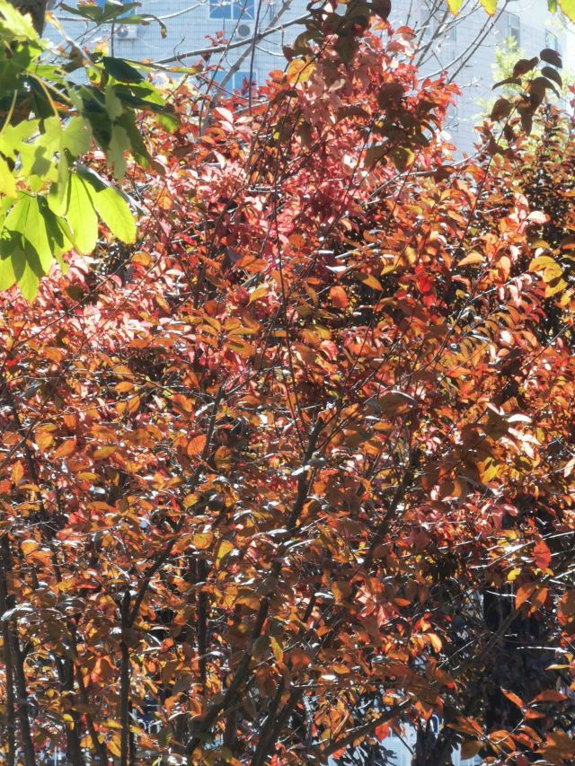 4分 满意京城秋色处处有,街边小公园内的变色秋叶也能让人不禁驻足细赏……