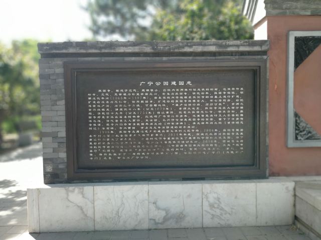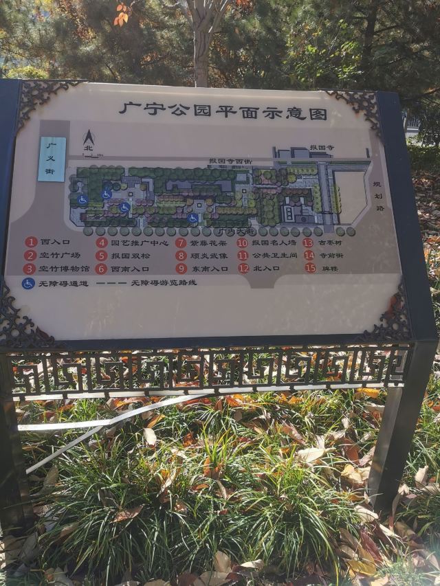 广宁公园在两广路北侧,广安门内,距离广安门桥很近,紧挨着七号线地铁站,以前就是绿化带,后来修成了一个小小的街边公园,一眼就可以望穿的那种。“广宁”取自“广宁门”,也就是现在的广安门,在明朝和清朝早期的时候广安门是叫做广宁门的,后来为了避讳帝王的名字因而改为现在的广安门。而广宁公园这个位置正在报国寺山门前,也就是北京著名的文玩市场那个报国寺,后来市场撤销了,也就不如原来那么热闹了。