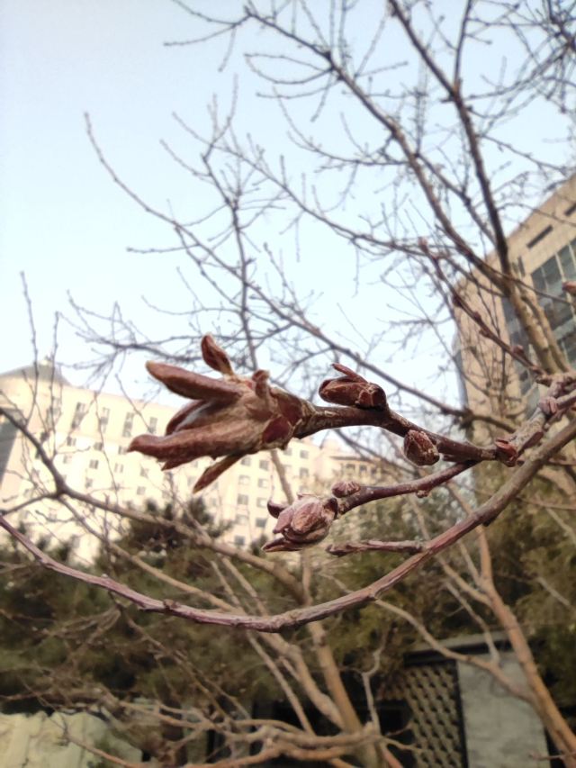 昨天已过了惊蛰节气,即将出暖花开、万物复苏了,园子里的花枝上开始吐出了新芽,用不了多久,枝条将会变绿、鲜花将会开放,这小园子里又要春光再现、恢复生机了,到那时,狭窄的小路都会被花丛遮蔽,这小小的花园就要变成另外一副景象了。