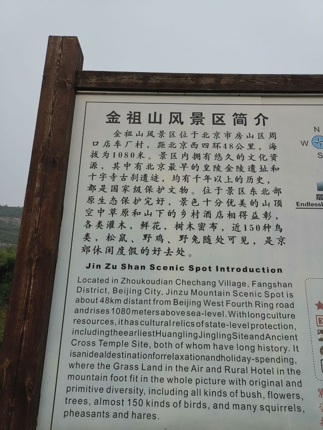 房山金祖山海拔1080米,内有重点文化保护单位金陵遗址和国内仅存的景教遗址元代十字寺等文物古迹,山顶拥有北京少见的空中草原。