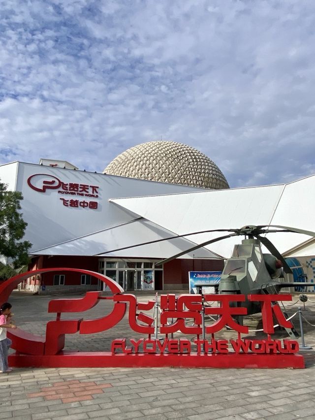 飞览天下·飞越中国馆位于石景山游乐园内,是一个球幕飞行影院,运用先进的技术,打造出全新的沉浸式飞行体验,带观众饱览祖国雄伟壮丽的风光。