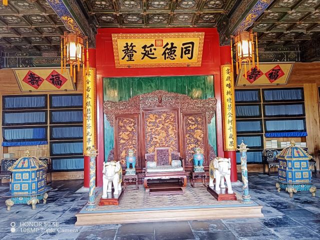 殿前多福轩的匾额为咸丰题写,意为幸福很多的殿堂。而轩内厅殿内大堂内的同德延鳌匾额为慈禧所提,同德延鳌的意思是让奕和她同心同德,方能福安长久的意思。