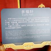 “多福轩”此匾为咸丰皇帝所题,意为幸福很多的殿堂。恭亲王时期称之谓“多福轩”,是王府的穿堂客厅,主要用于主人日常接待来客、亲友或前来回禀公事的下属,兼用作存放皇帝送来的礼物。
