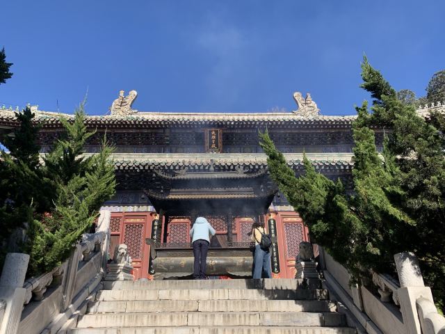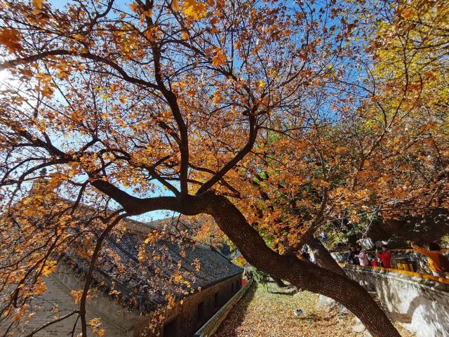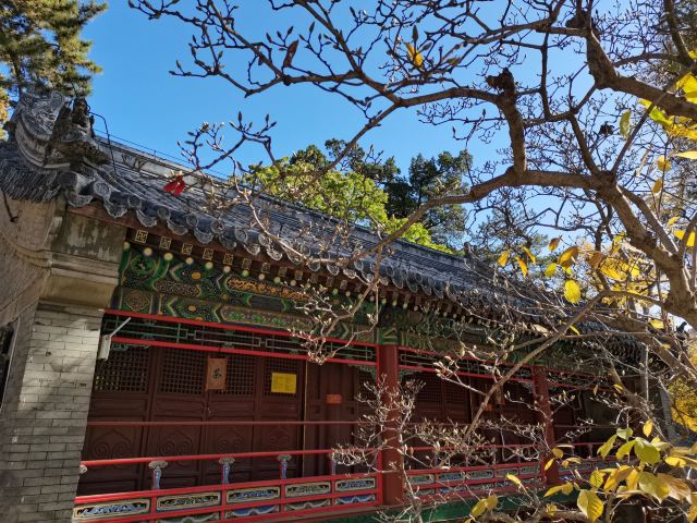 参观塔林之后便可从山门入寺,寺内的中轴线上分布着山门、天 王殿、大雄宝殿、毗卢阁等建筑,左右两侧有梨树院、行宫院等,都可以步行一一参观。寺内的建筑风格统一,大多有鲜艳光彩的彩绘,而且布局十分精致,其中不乏当年历代皇帝来此居住的行宫,所以十分精美。除了建筑外,院落里还有很多参天的古树,树木参天蔽日,更是给人古老幽静的感觉,拍照摄影也十分不错。